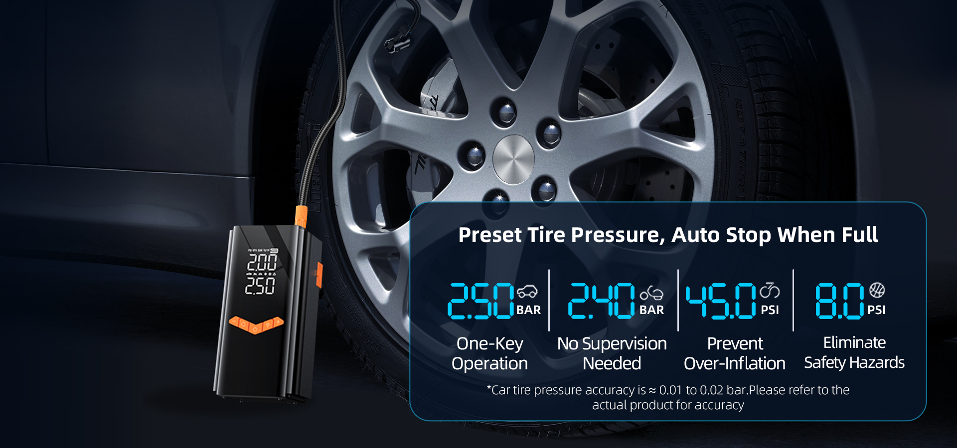 • Auto-shutoff when reaching preset pressure