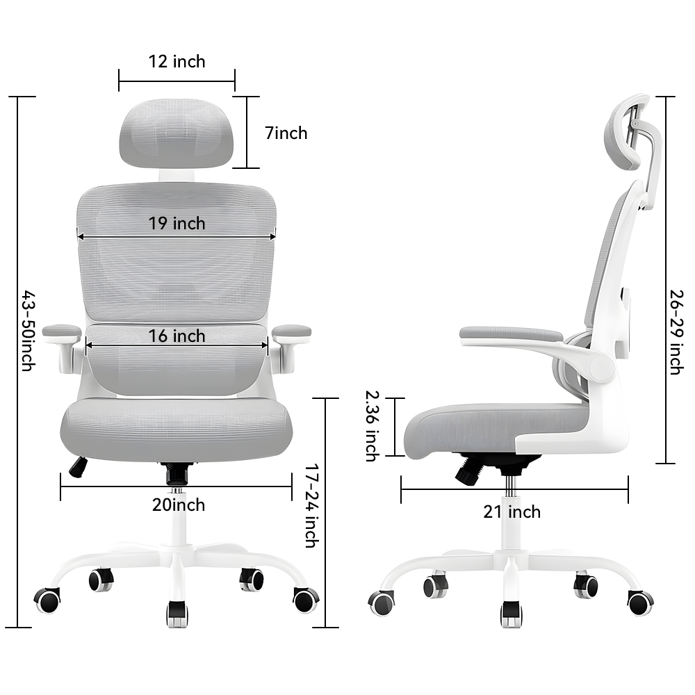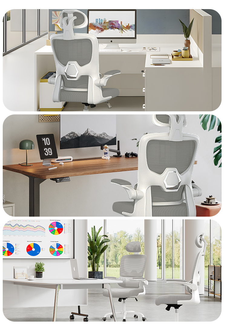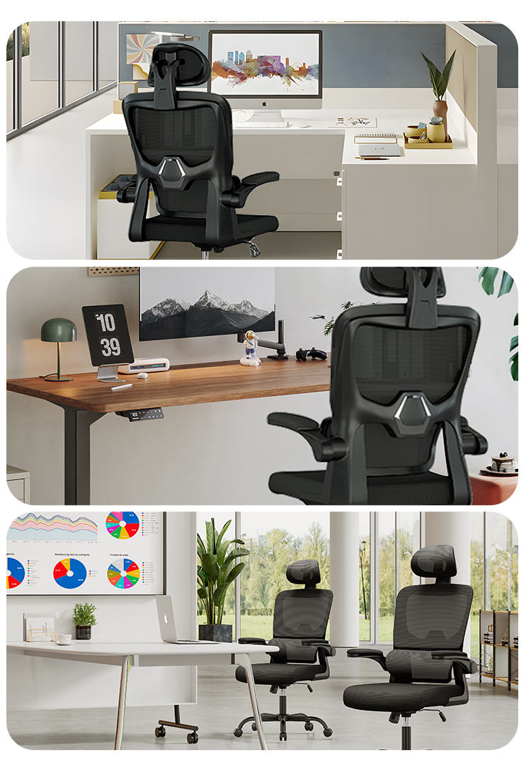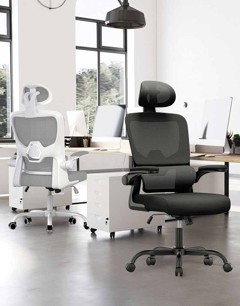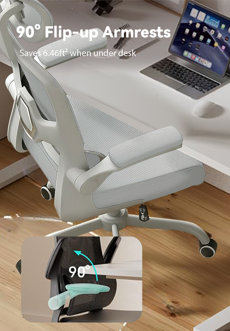 The adjustable armrests of comfy office chairs can be turned up and down at will. When you are leaning back in the chair to have a rest, the padded armrests are perfect for supporting your elbows. Or when you don't need to use the home office chair, you can flip up the armrests and push the chair under the desk to save space.