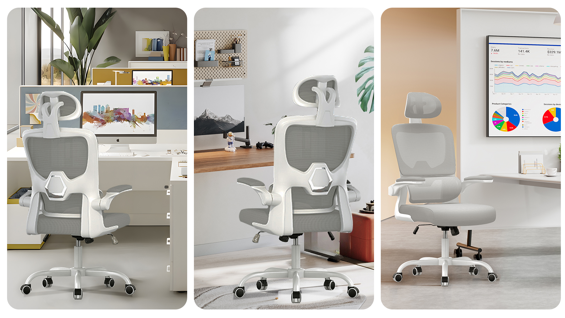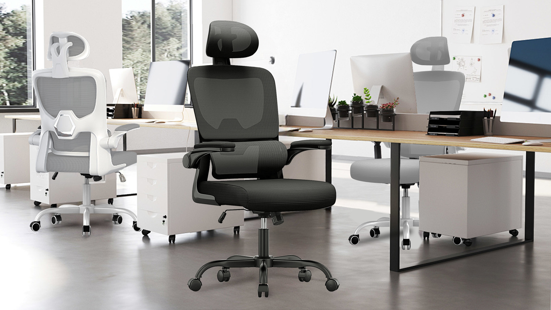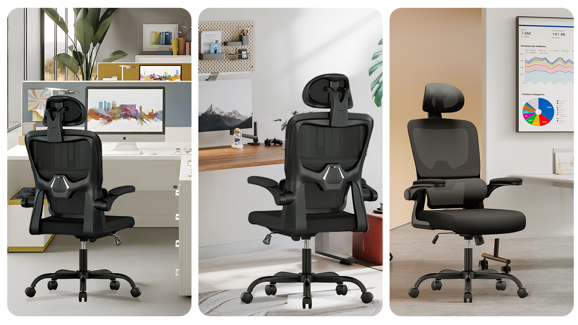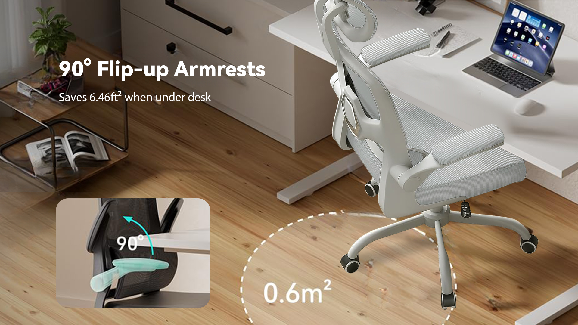 The adjustable armrests of comfy office chairs can be turned up and down at will. When you are leaning back in the chair to have a rest, the padded armrests are perfect for supporting your elbows. Or when you don't need to use the home office chair, you can flip up the armrests and push the chair under the desk to save space.