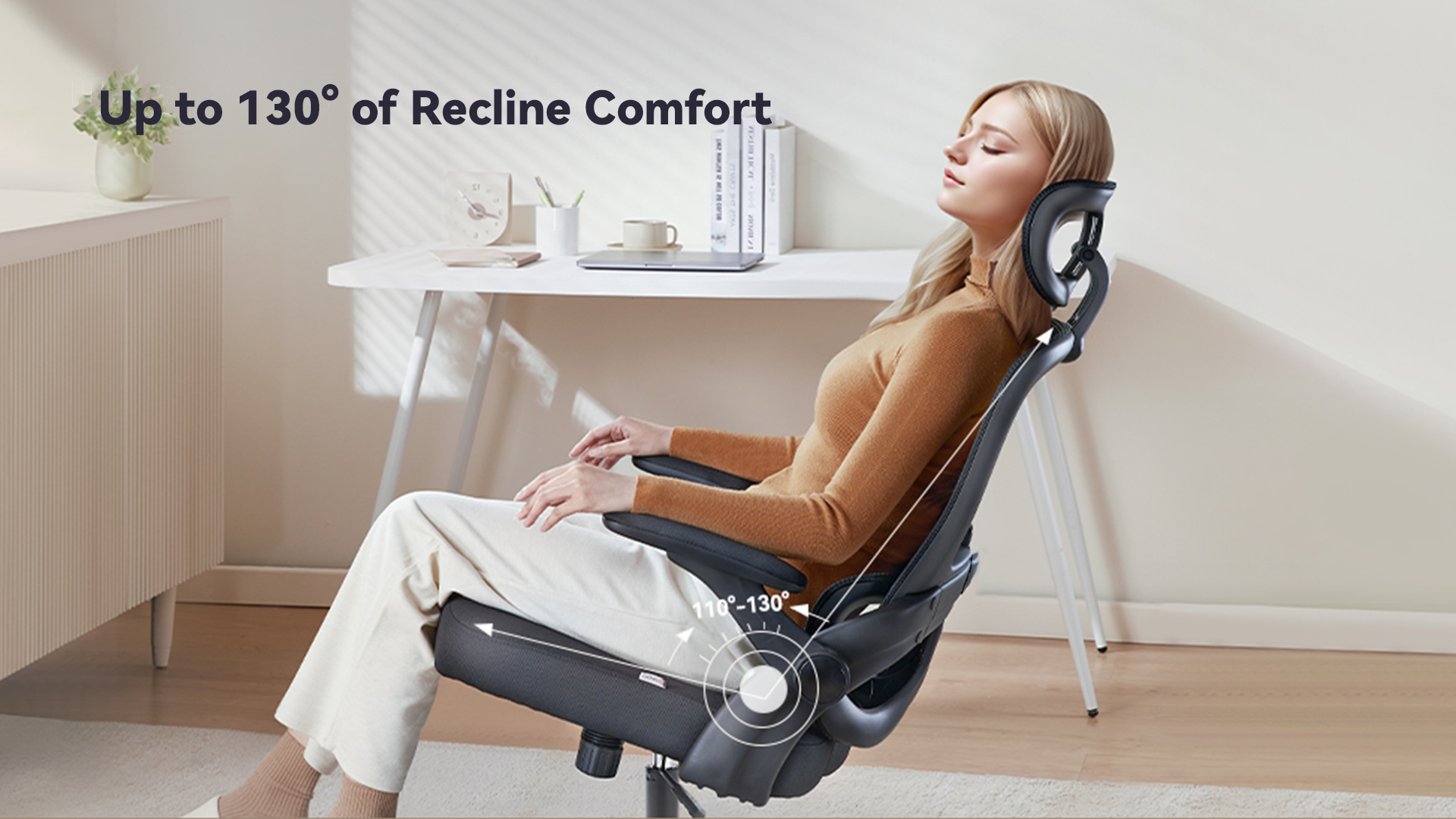 The premium mesh lumbar support of this Rivexo office chair optimizes ventilation and heat dissipation while offering precise relief for your waist's pressure. The ergonomic office chair's rocking function allows you to lean back and tilt 90~130° for leisure, making you feel more relaxed in any sitting position.