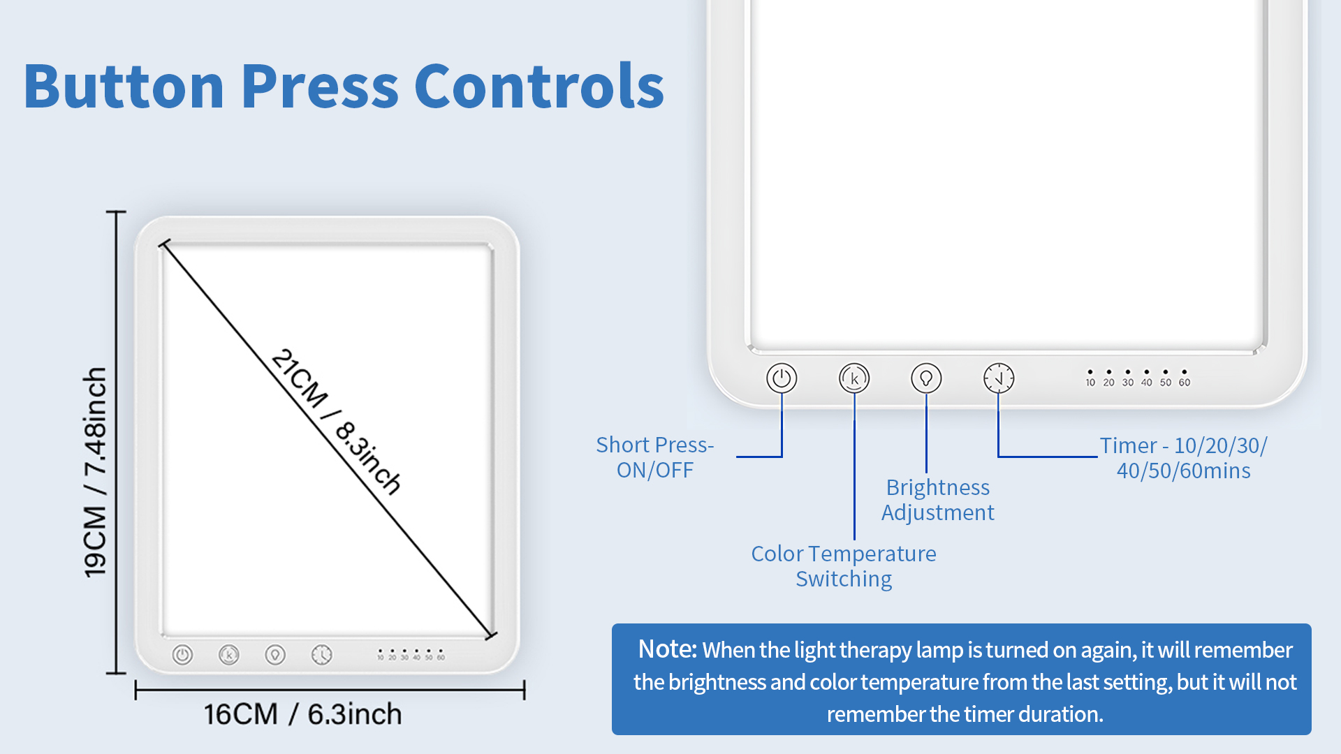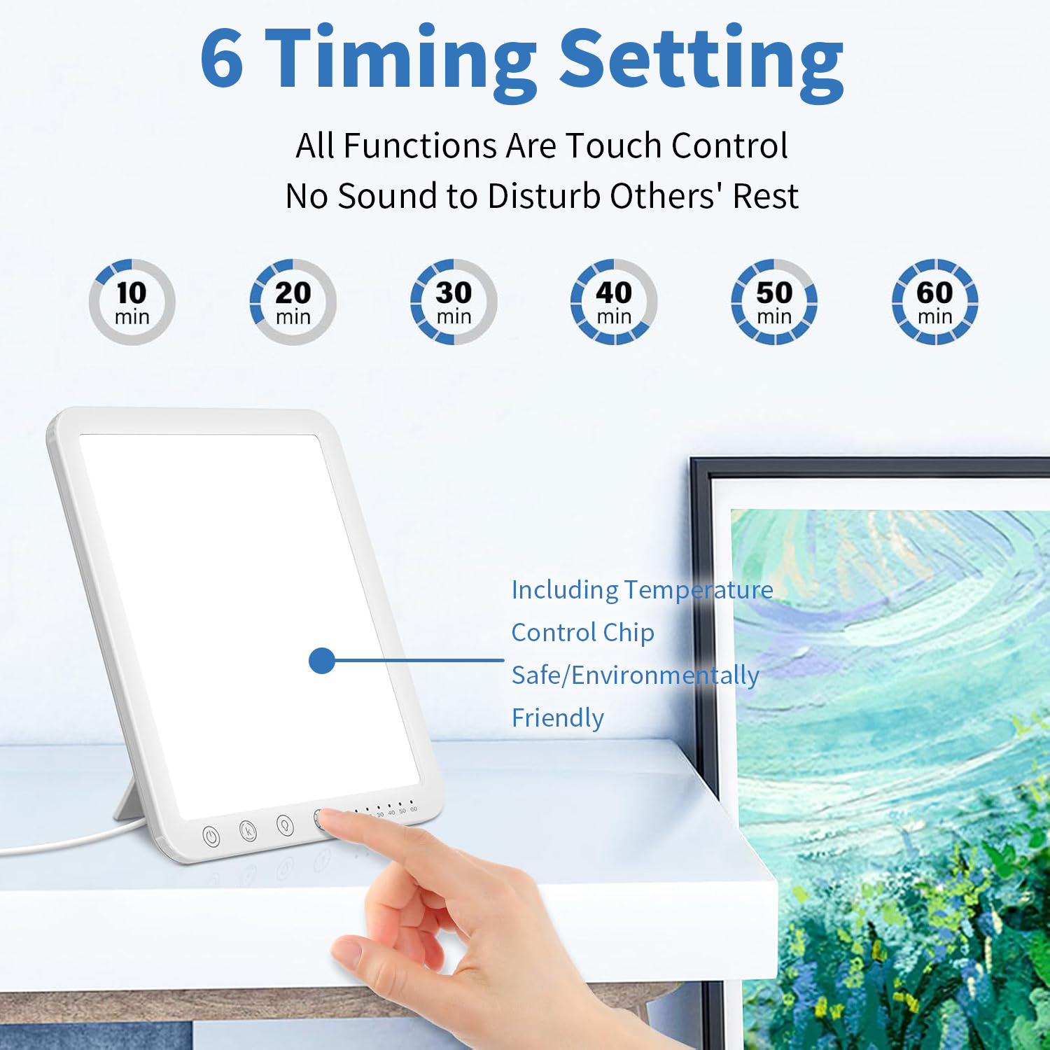 Our sun light therapy lamp offer 5 brightness levels (20%-100%) for maximum comfort and customization without hurting the eyes. This sun lamp is equipped with an Air-cooled Chip that the lamp at any time without it exceeding 36℃. This extends the life of the lamp and also ensures safety in use.